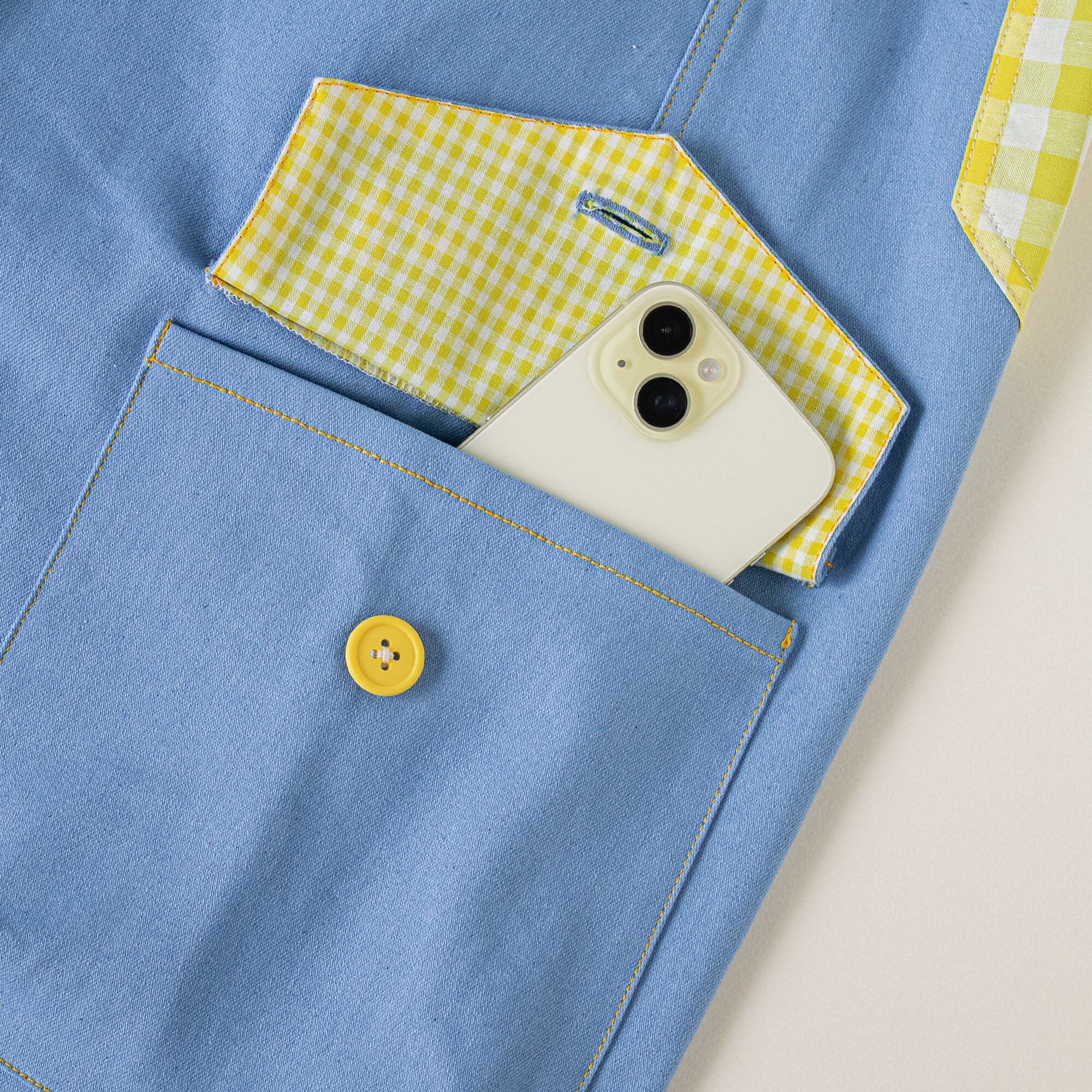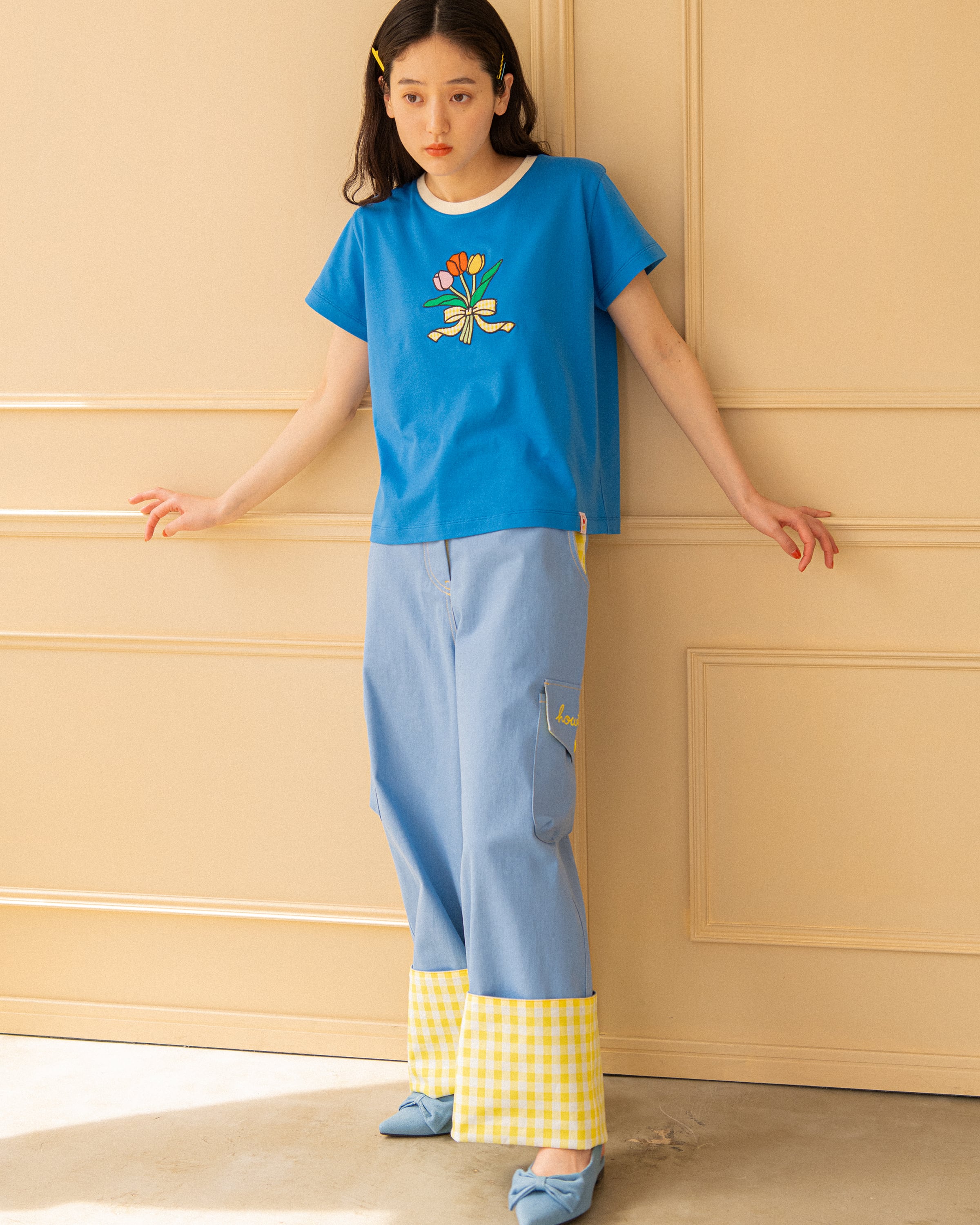 The hem has a slightly wide silhouette, making it suitable for a casual look. When you fold the hem back, the gingham fabric appears, so you can fold it in half or adjust the length to your liking.