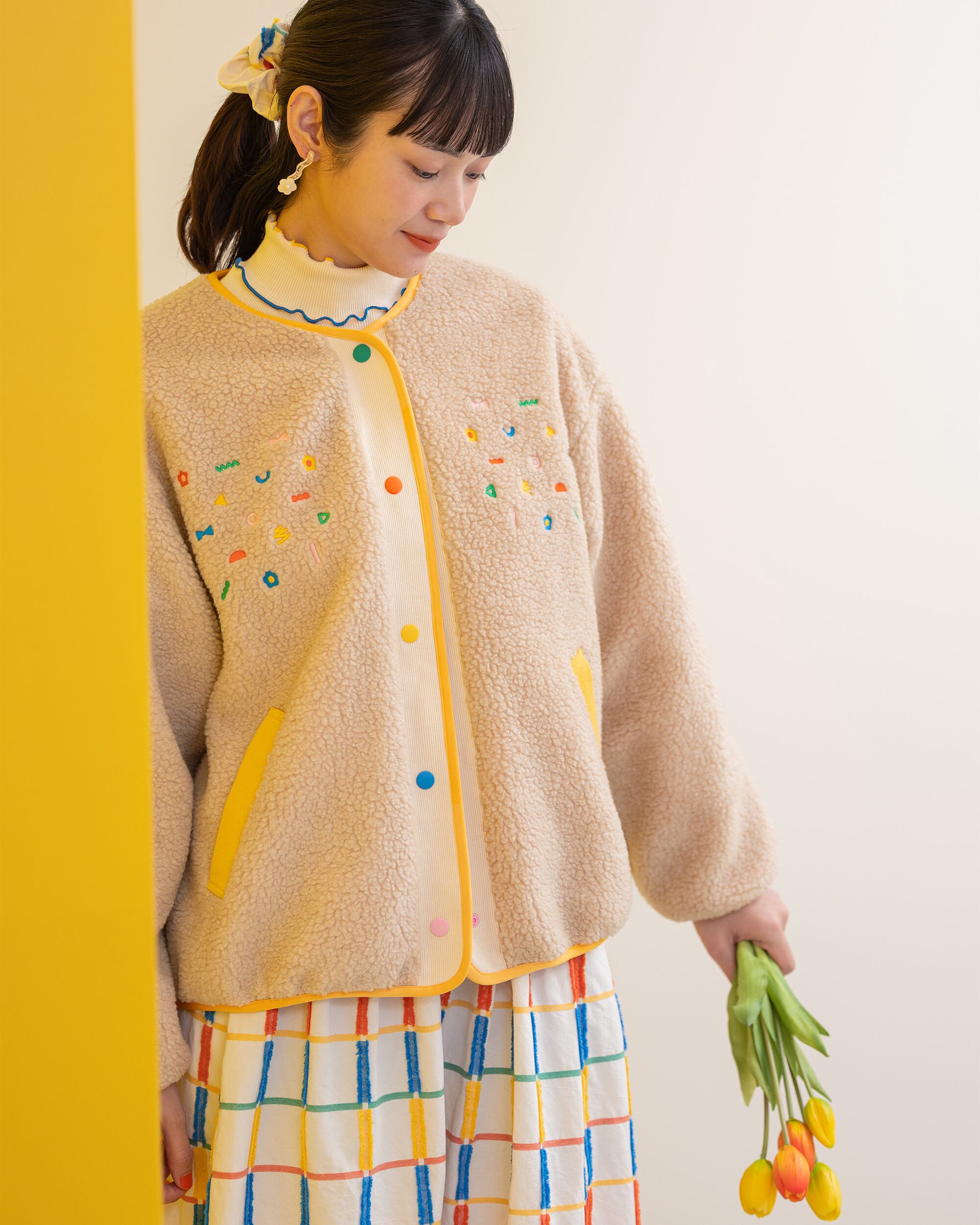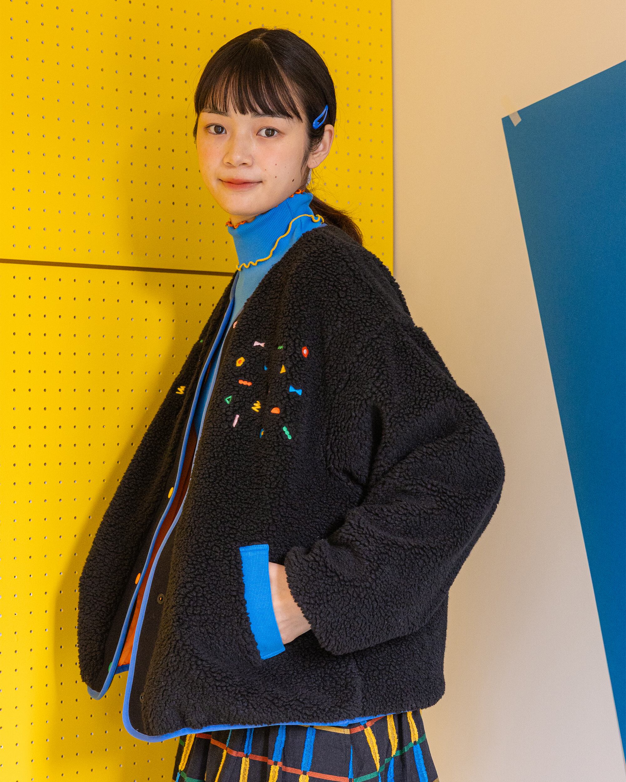 This boa blouson features playful, small, geometric embroidery that fills the chest.⋆☁︎⋆☾⋆
