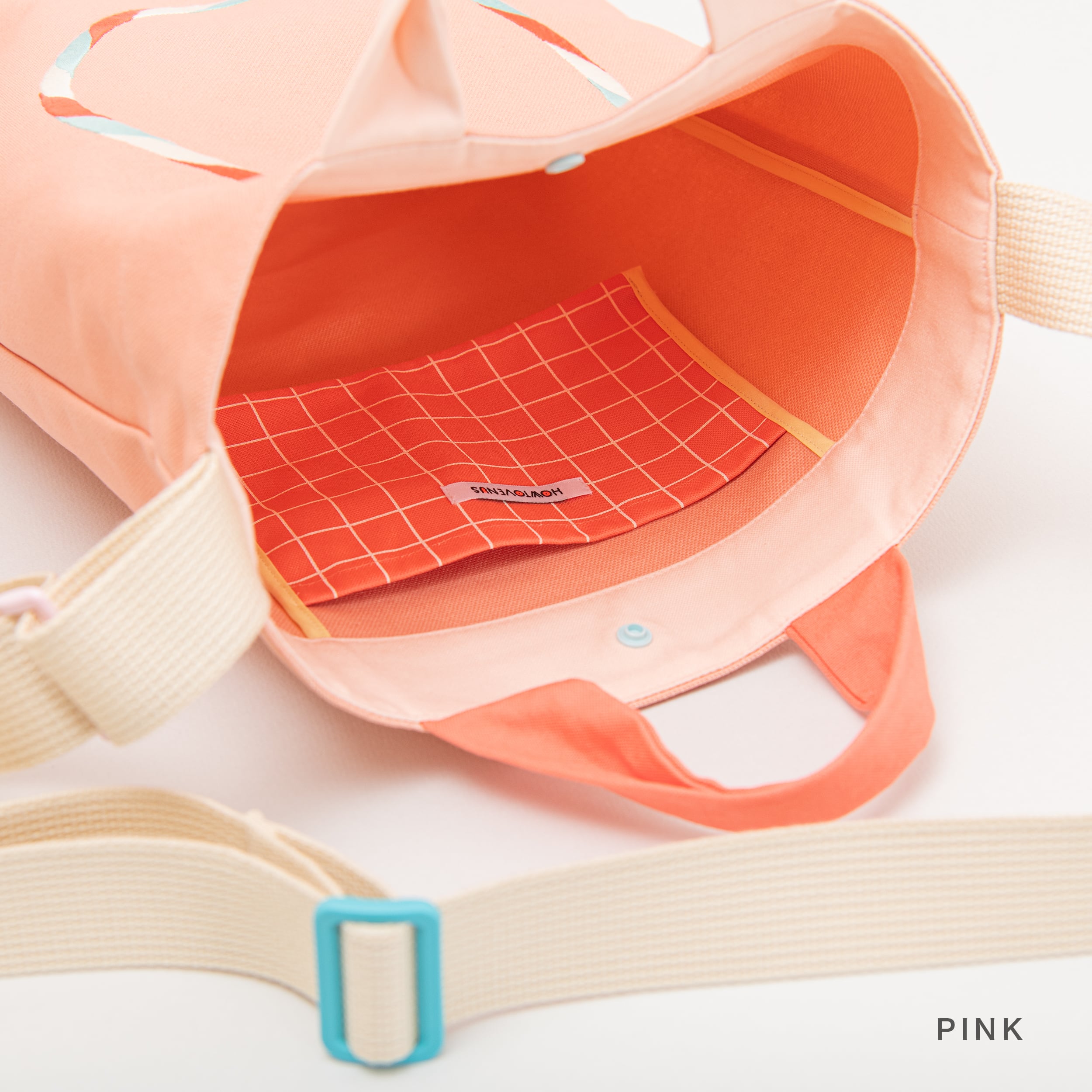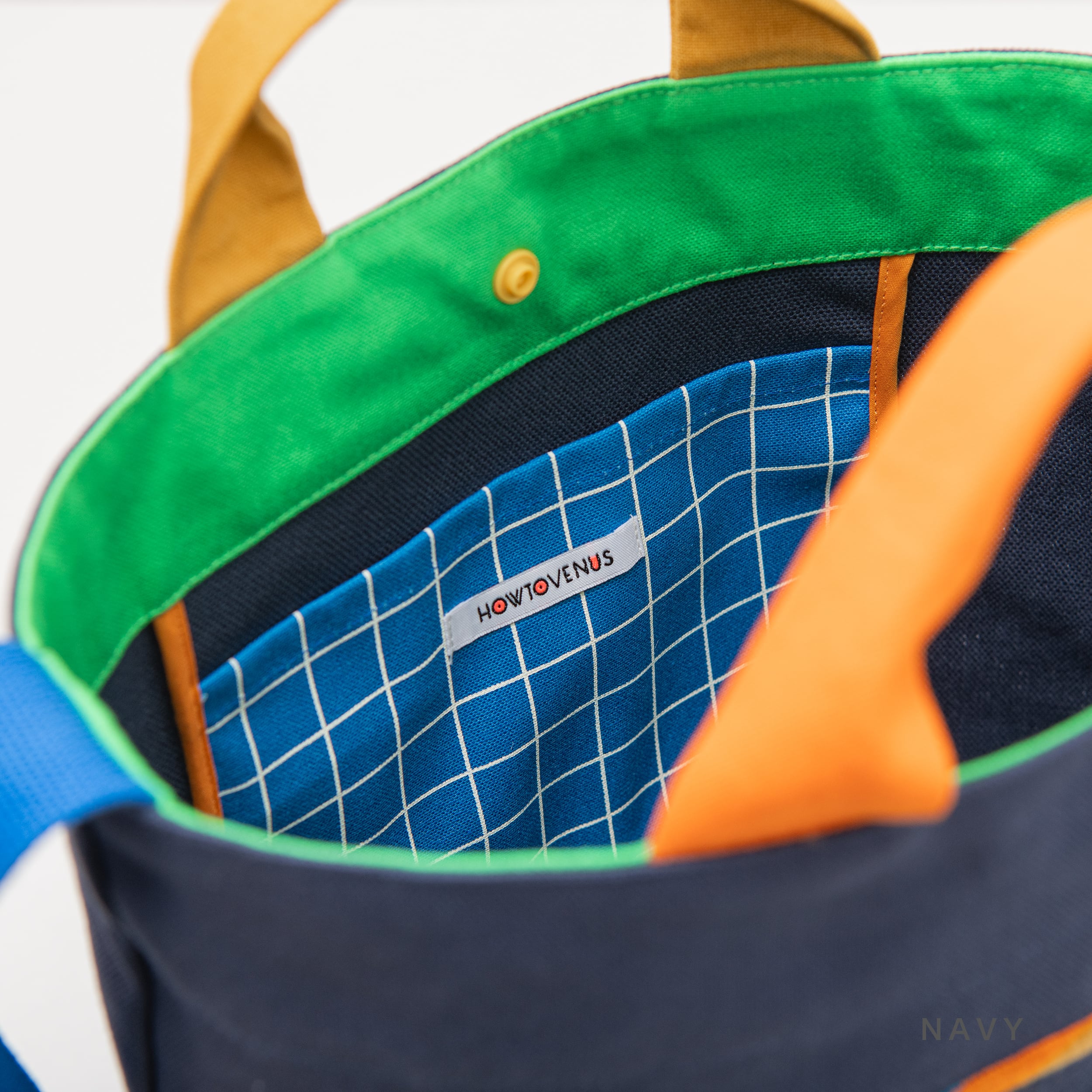 It also has a cute inner pocket with a hand-printed check pattern that peeks out, making it very practical!