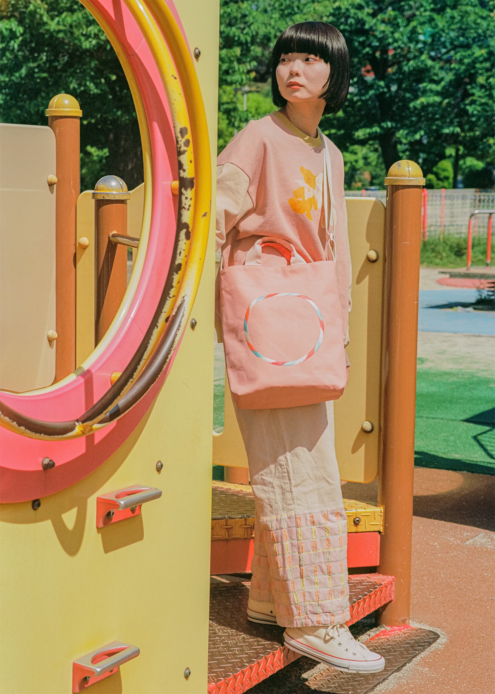 We made a toy-like bag based on the theme of the hula-hoop we played with as children !
