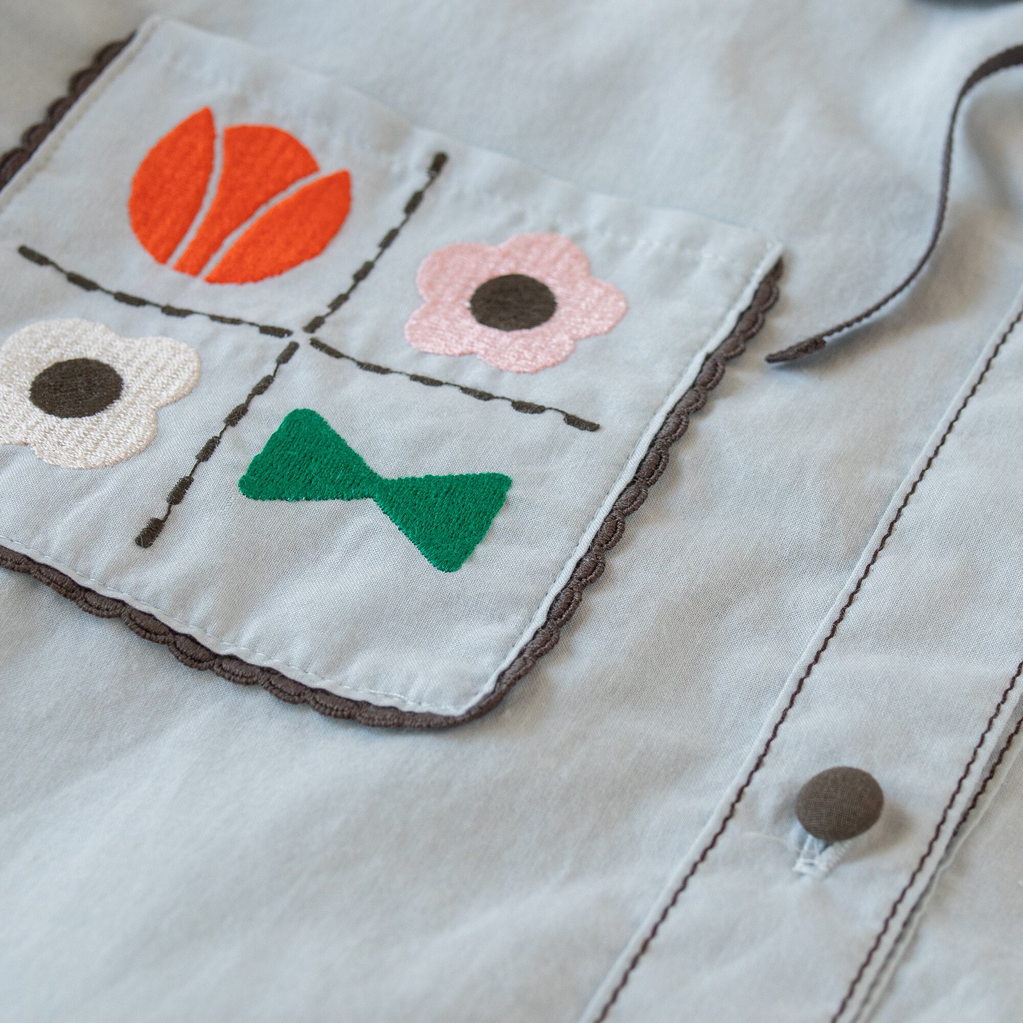 Inspired by the game "Tic-tac-toe," we created a cute blouse with embroidered pockets in geometric shapes that are characteristic of howtovenus.