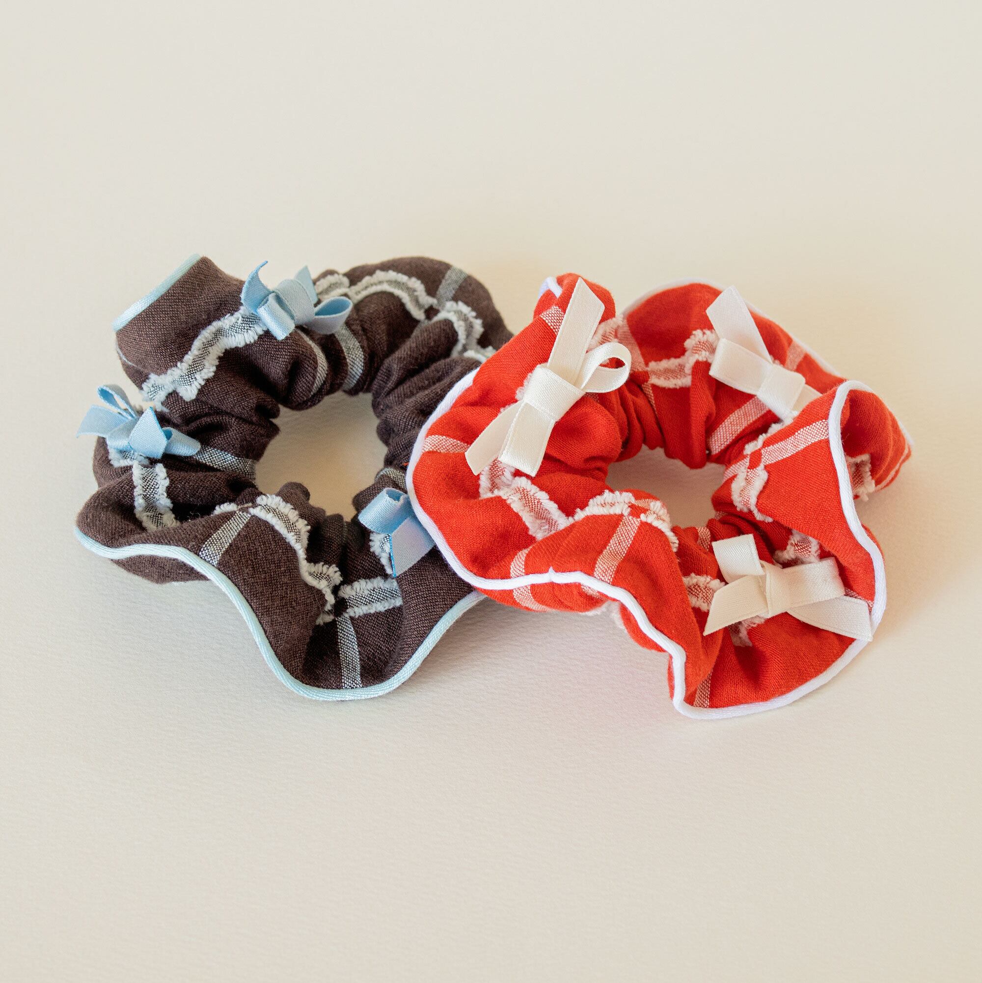 We have created a voluminous chou chou made with plenty of our original check fabric.